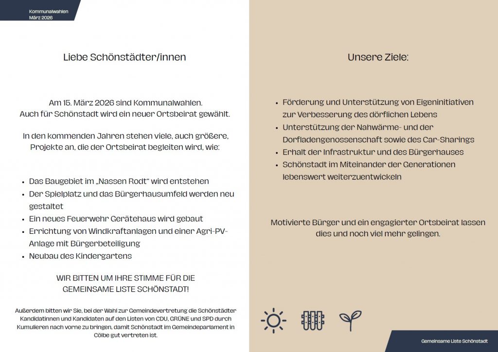 Flyer zur Wahl des Ortsbeirat Schönstadt